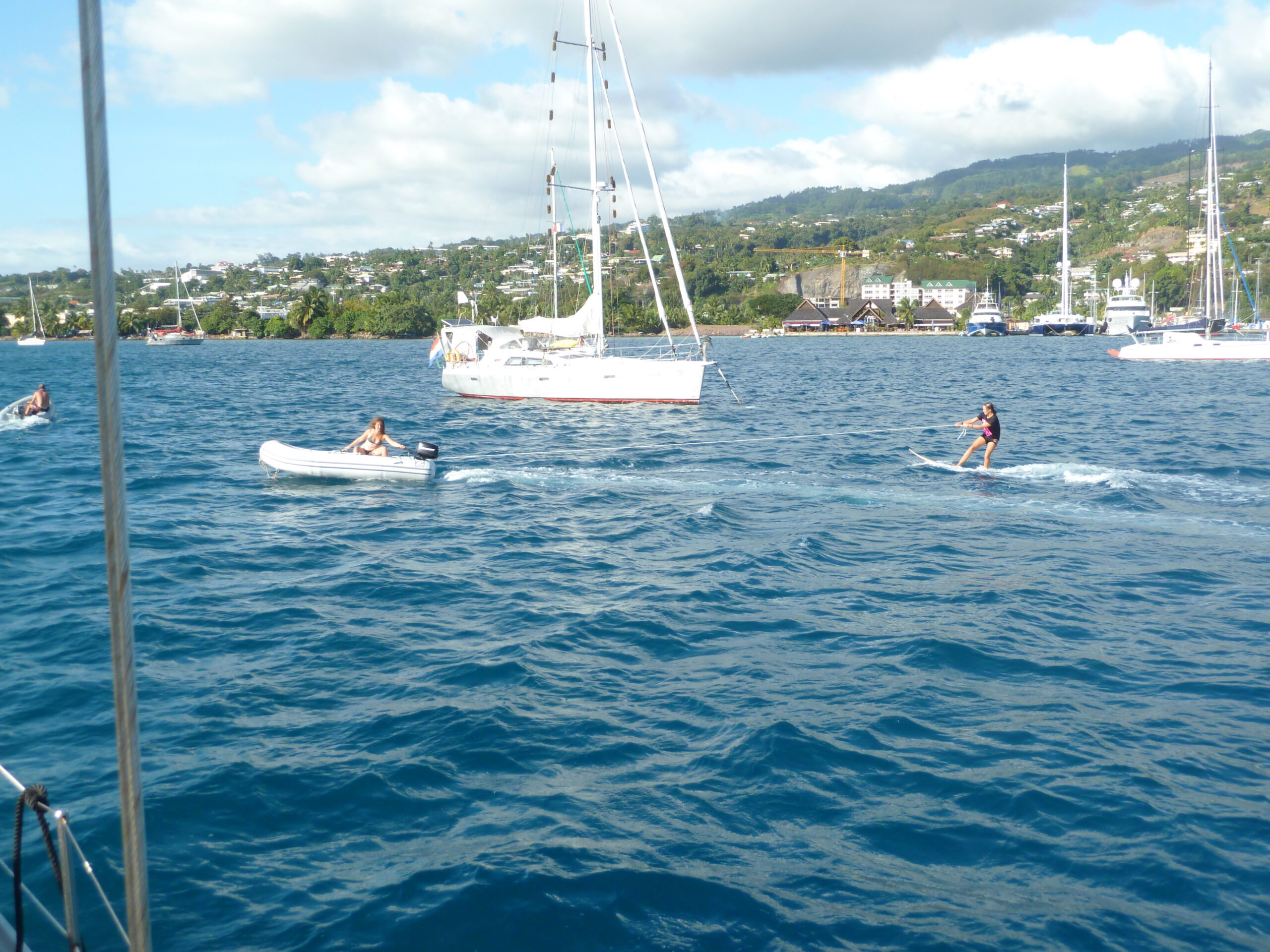 We left Tahiti at noon today after getting our last fresh food and saying goodbye to some friends we made in the three weeks we have spent in beautiful Tahiti. Jillian left this morning, after her original flight got cancelled because of airline strikes. Now she’s on a plane back to the States along with little Kiwi. So now it’s off to New Zealand. Right now there’s almost no wind and we’re passing Moorea at 2 knots with nice weather. I’m going to miss these beautiful islands. I’ve gotten more attached to them these last two years than I realized. It feels kind of strange now to leave these Pacific islands that I’ve come to know so well and try to settle in the place where I was born. It’s a place I know in my heart but just haven’t really seen with the eyes I’m looking with now. After these years sailing all over the world, I’m on my final trip to New Zealand. It’s strange but I’m also really looking forward to it. It’s so exciting!