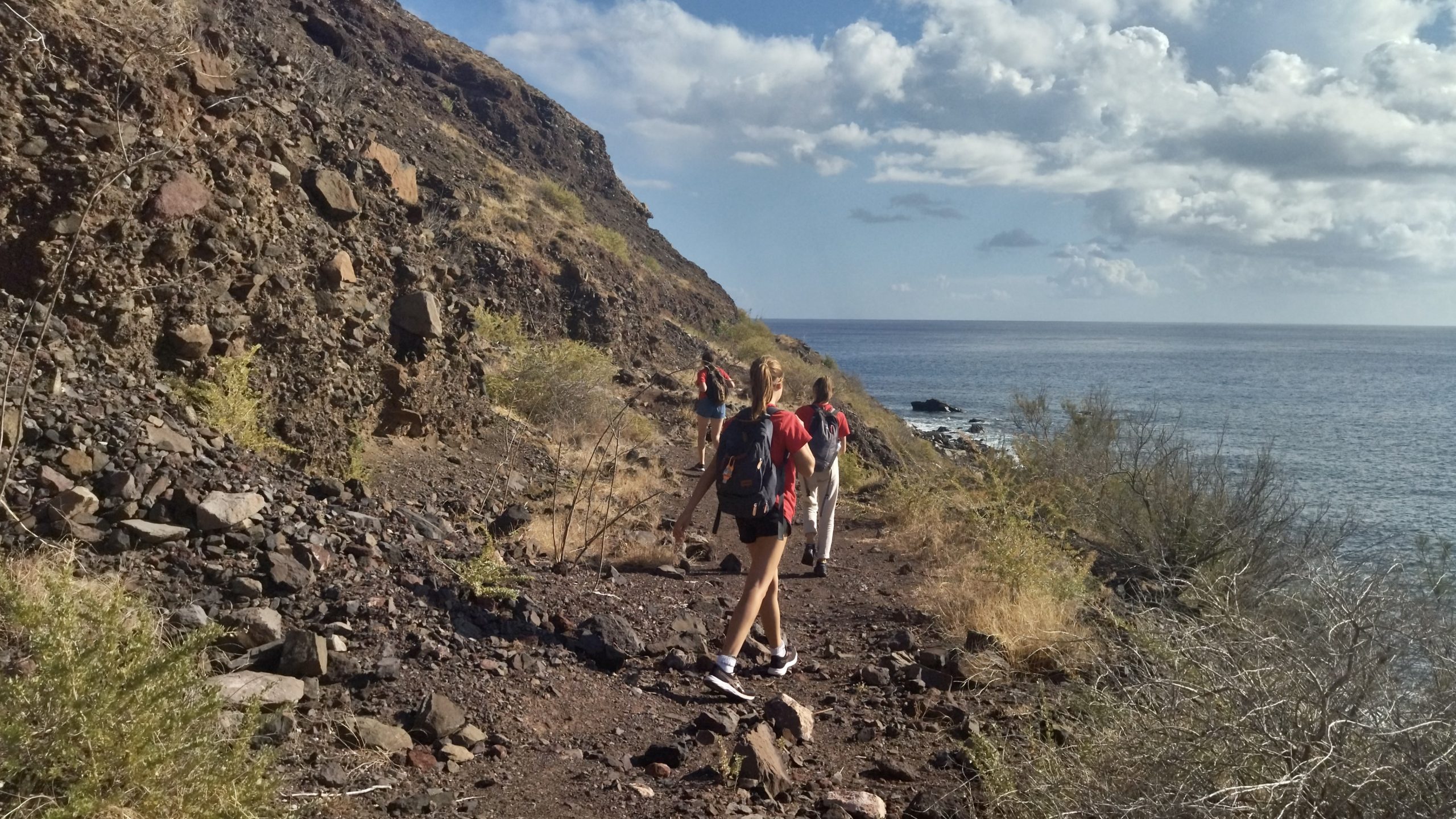 After we had done our formalities in Porto Santo we were allowed ashore and go exploring. At first sight, it seems a bit like a bare rocky island with not much to see but how wrong that first impression is! Yes, there is a lot of rock.. But in such amazing colors and formations making us stare in wonder at every corner. So far we have done two smaller hikes, doing schoolwork in the mornings and leaving early for an afternoon of exploring. Yesterday we went along the coast and today we ventured to the other side of the island to climb Pico Branco. A very lovely hike with a very stunning difference in the landscape. The hike starts out in the dry rocky landscape that we can also see from the boat. With amazing rock formations and some smaller shrubs, but once over the crest and to the other side we suddenly ventured into a cedar forest which just smelled amazing! The view from the top was absolutely worth every drop of sweat 😉 Once back onboard we all went for a well-deserved swim and soaked up some of the last sun rays that fell onto Guppy’s deck before doing some cleaning and today’s cooking crew starting on dinner.